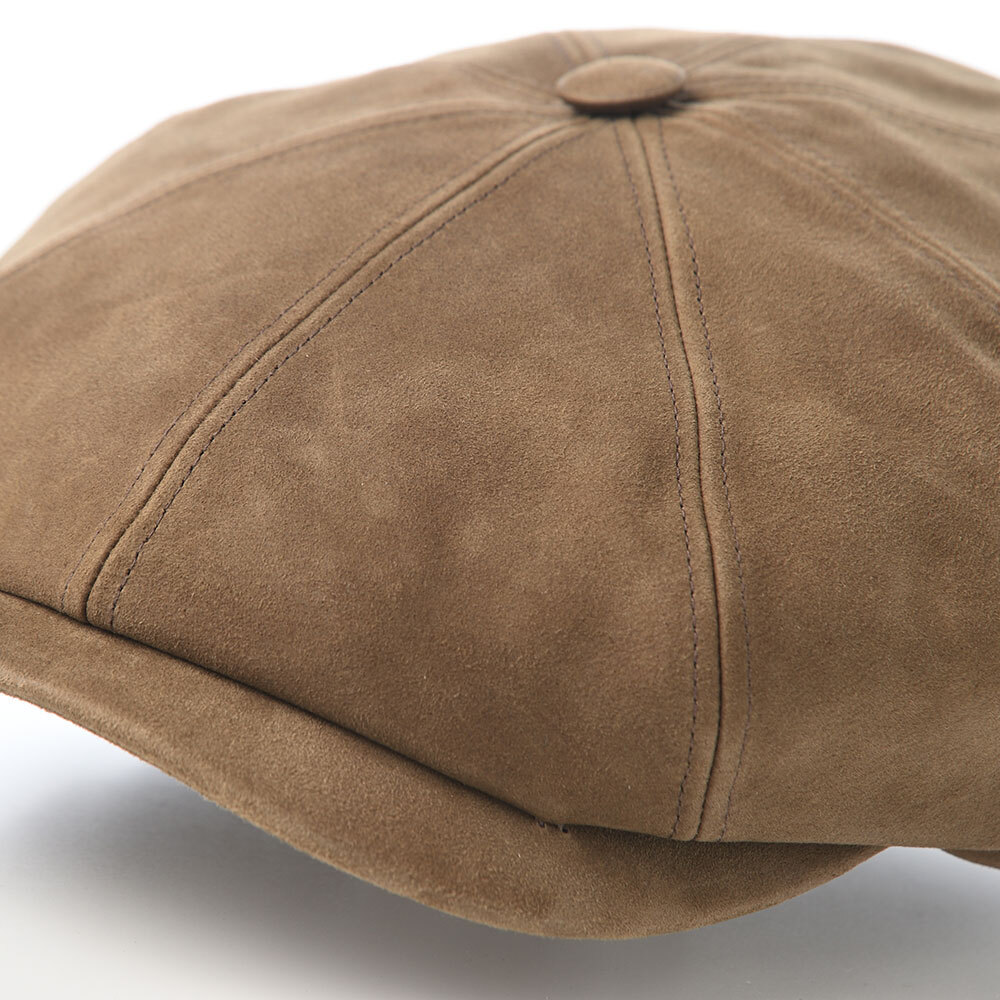 柔らかく軽量なゴートスエードを使用した、なめらかで奥行きのある8枚はぎキャスケットです。本革ならではの風格と高級感があり、秋冬コーデを手軽に格上げできます。