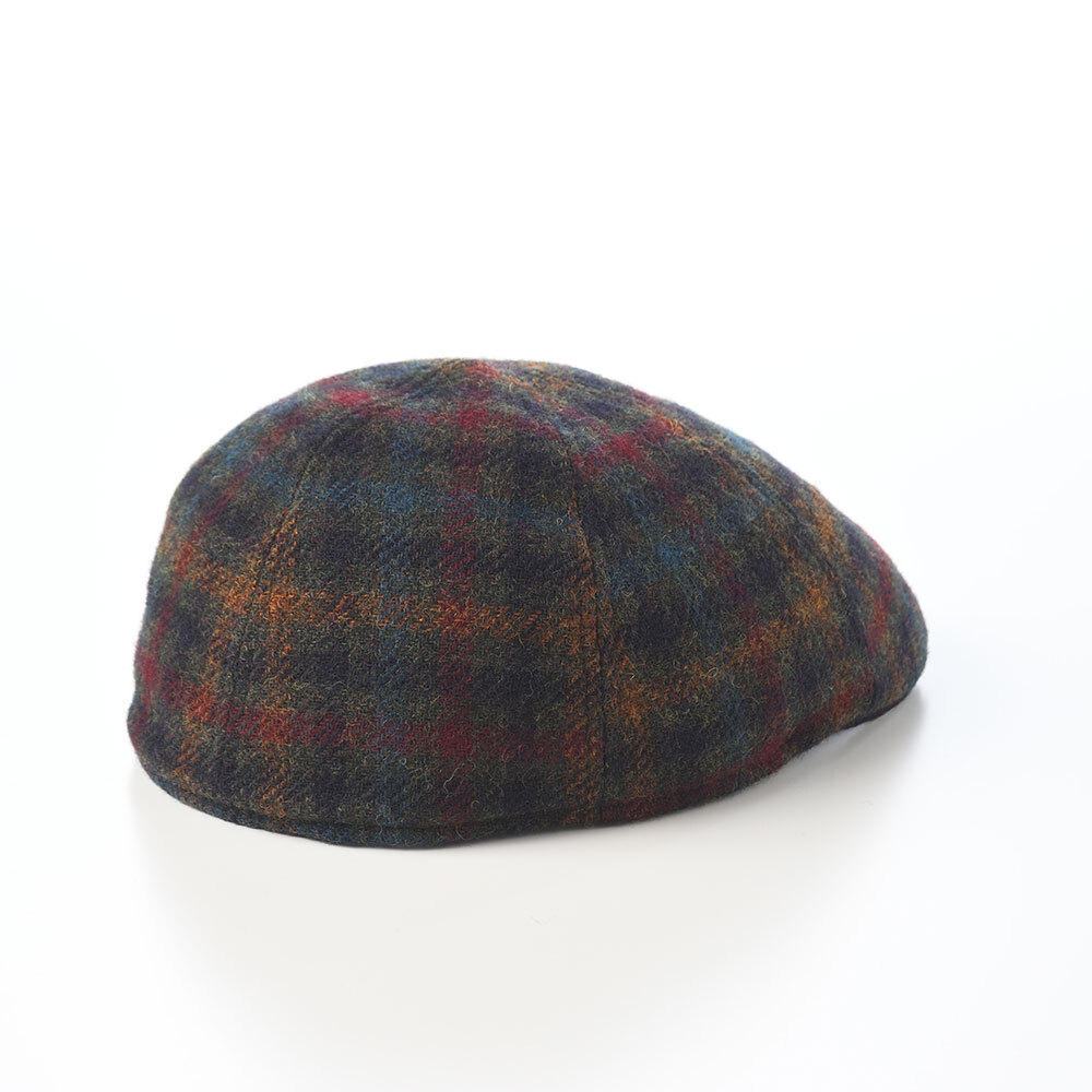 ざっくりとした風合いで、ミックスカラーのチェック柄のウールツイード生地を使用したハンチング。曲線的なフォルムが美しい、パブキャップ風のシルエットが特徴です。