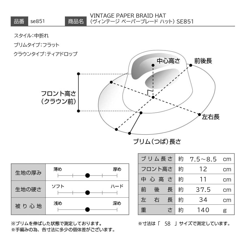 VINTAGE PAPER BRAID HAT(ヴィンテージ ペーパーブレード ハット) SE851 ブラック [se851-black]