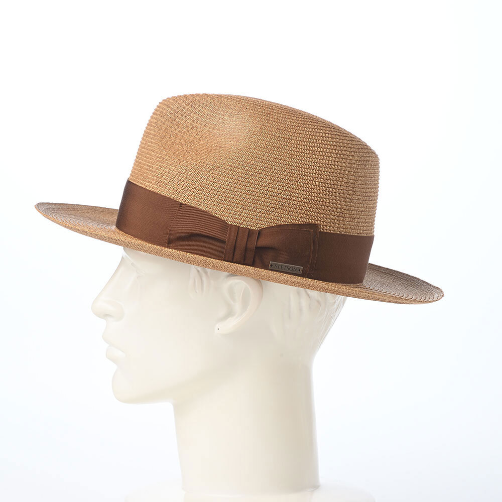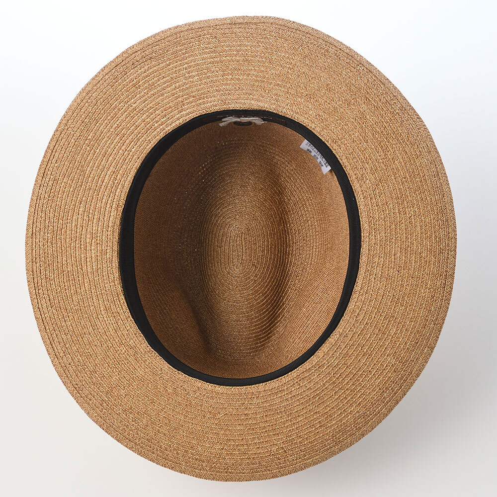 一見天然素材のようにも思える外観で、適度なシャリ感があるため、夏の着用に好適です。ブリムは限りなくフラットに近いオールアップ。シンプルなデザインが魅力です。
