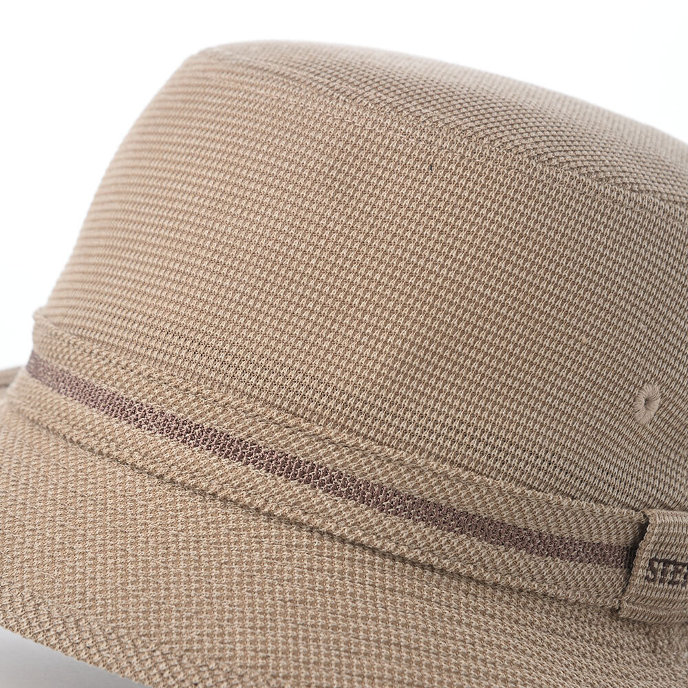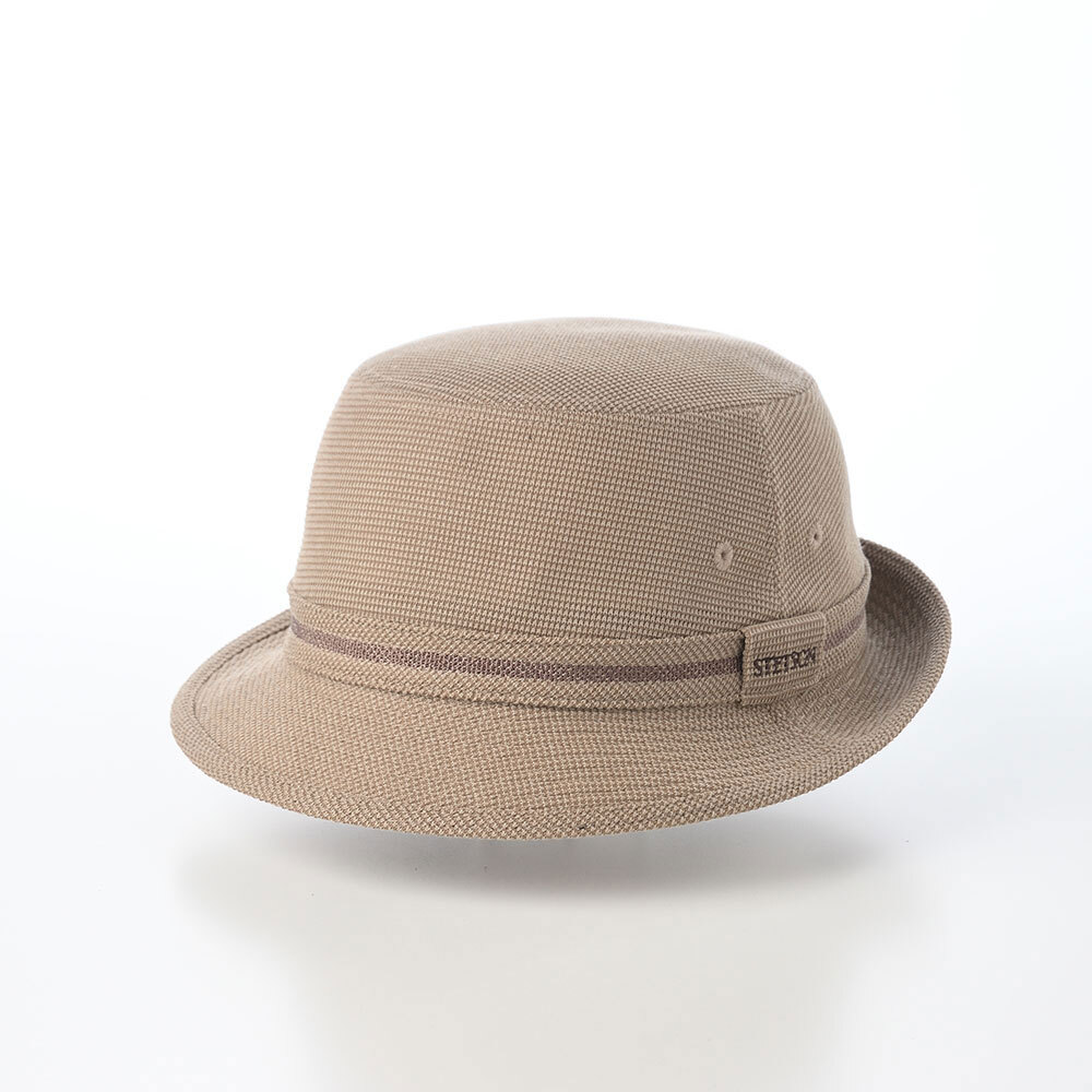 メッシュ状で通気性抜群のサーフニット素材を用いた、軽くて涼しいアルペンハット。バーズアイを思わせるような上品な柄感も魅力で、普段使いからアウトドアまで対応。