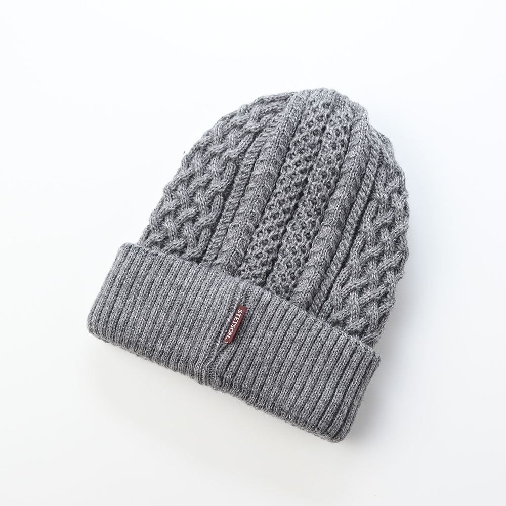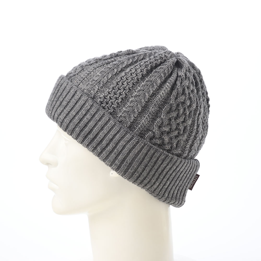 アクリル、ポリエステルというスポーティな素材ながら、ランダムに地柄を組み合わせた変形のケーブルニットで表情豊か。コーディネートのポイントに最適な一品です。