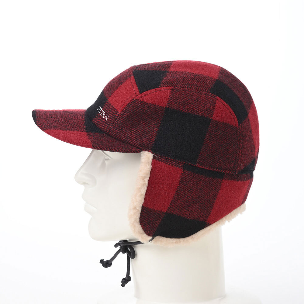 クラウンは、シェットランド原料で保温性の高いツイード生地。耳あては、モコモコのボア状。バッファローチェック柄は、カジュアルに取り入れやすい、注目の色柄です。