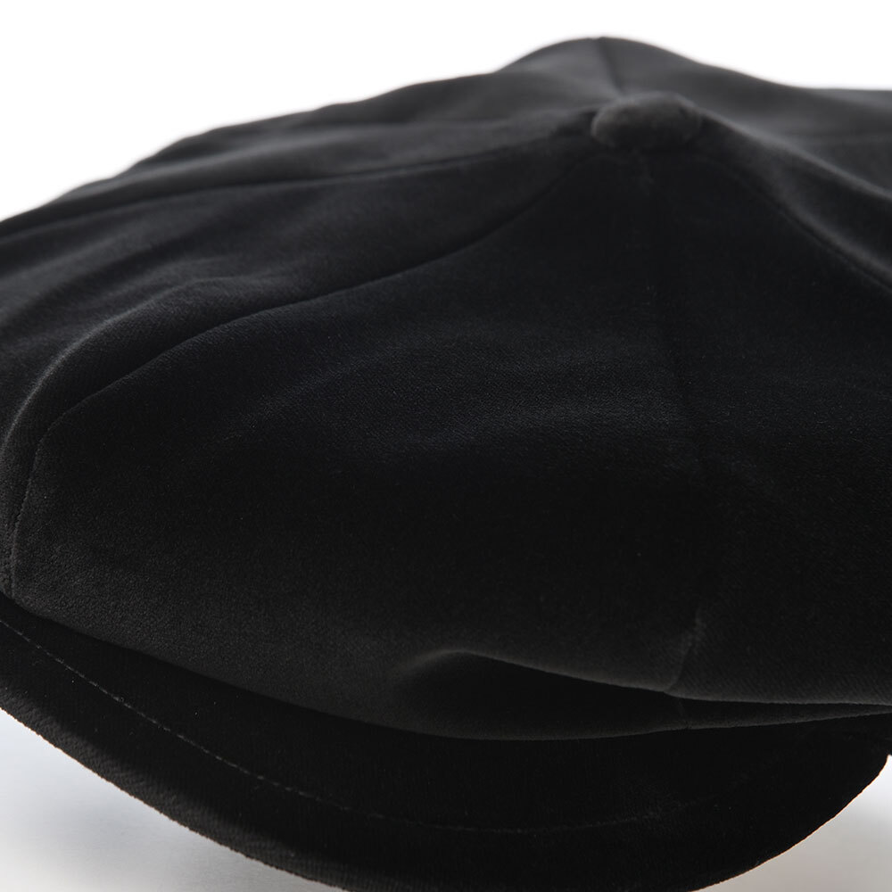 スーピマコットン素材の、極上なめらかな日本製ベルベット生地を用いたビッグシルエットのキャスケット。ボリュームのあるクラウンを左右にずらしてかぶるのがおすすめ。