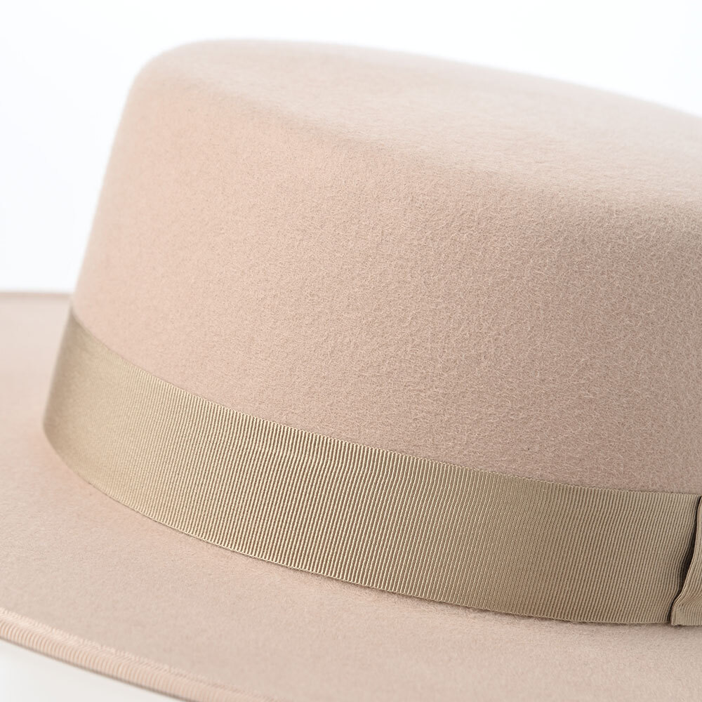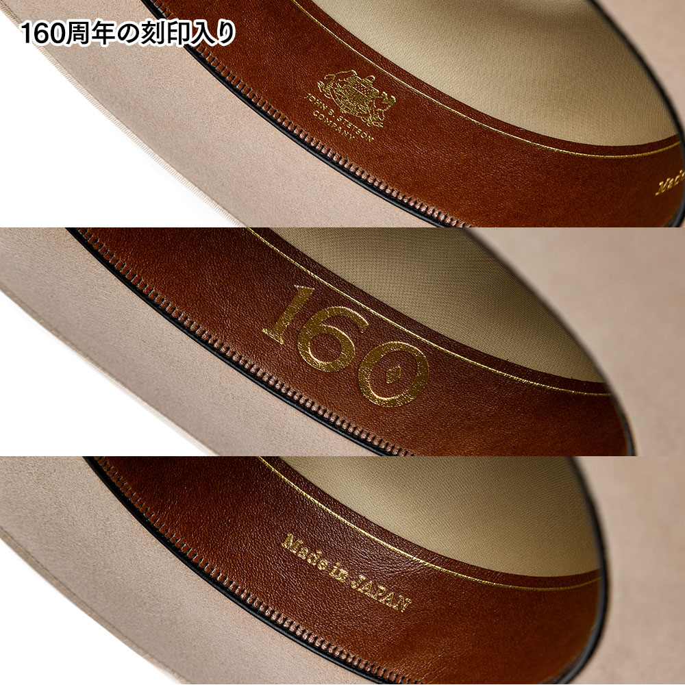 STETSON160周年記念の日本生産モデル。フラットなロングブリムと平天のクラウンが特徴です。内側には、オリジナルロゴ箔プリント入りの革スベリを採用しています。