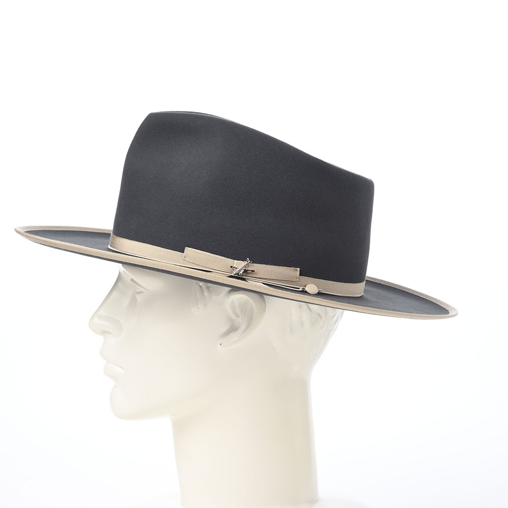 1940年代のビンテージなストラトライナーを日本製で細部まで再現した、オープンクラウン仕様のラビットファーフェルトハット。ボーイング307旅客機を模したピン付き。