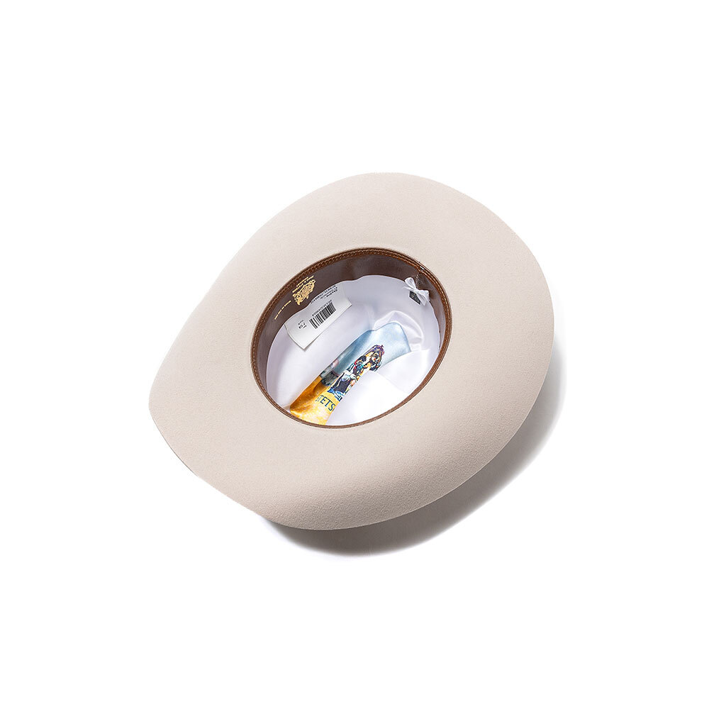 本国で一番人気のクラシックなウェスタンハットです。ベルト部分のバックルはシルバートーン仕様。ロゴ箔プリント入りの革スベリ、総裏地を備えたクラシック仕様です。